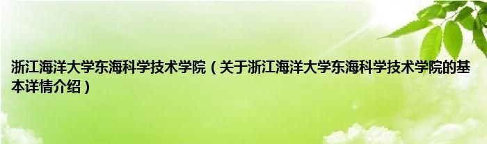 本文关于浙江海洋大学东海科学技术学院的基本详情介绍就讲解完毕,希望对大家有所帮助。