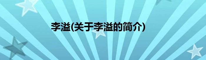 大家好,李溢,关于李溢的简介很多人还不知道,现在让我们一起来看看吧!