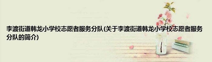 本文关于李渡街道韩龙小学校志愿者服务分队的简介就讲解完毕,希望对大家有所帮助。