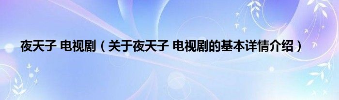本文关于夜天子 电视剧的基本详情介绍就讲解完毕,希望对大家有所帮助。
