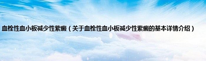 本文关于血栓性血小板减少性紫癜的基本详情介绍就讲解完毕,希望对大家有所帮助。