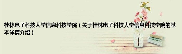 本文关于桂林电子科技大学信息科技学院的基本详情介绍就讲解完毕,希望对大家有所帮助。