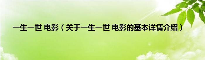 本文关于一生一世 电影的基本详情介绍就讲解完毕,希望对大家有所帮助。