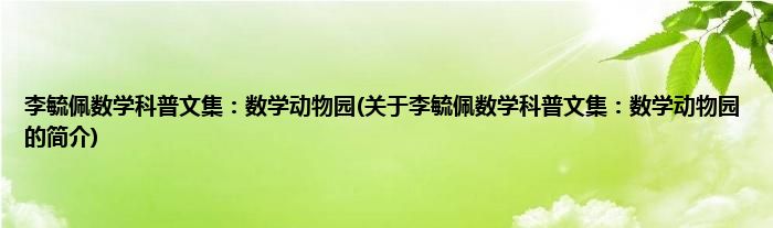 本文关于李毓佩数学科普文集:数学动物园的简介就讲解完毕,希望对大家有所帮助。