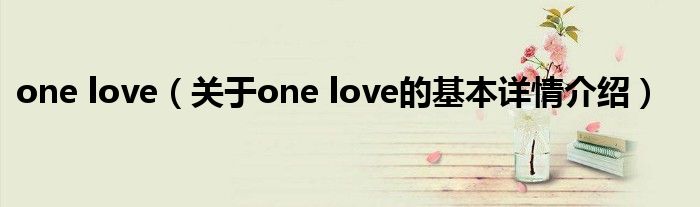 本文关于one love的基本详情介绍就讲解完毕,希望对大家有所帮助。