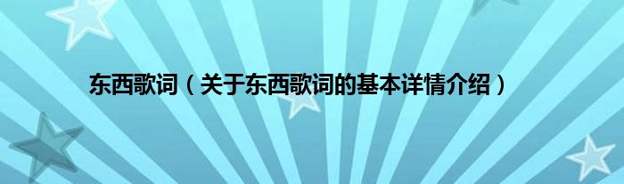 本文关于东西歌词的基本详情介绍就讲解完毕,希望对大家有所帮助。