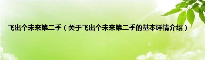 本文关于飞出个未来第二季的基本详情介绍就讲解完毕,希望对大家有所帮助。