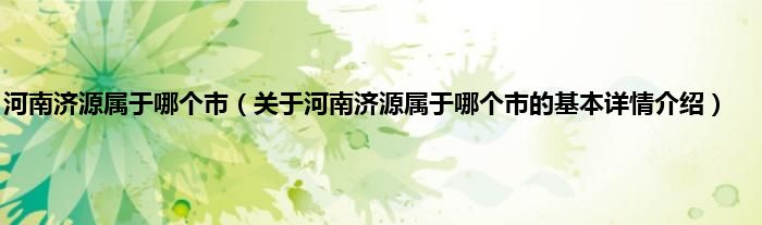 本文关于河南济源属于哪个市的基本详情介绍就讲解完毕,希望对大家有所帮助。