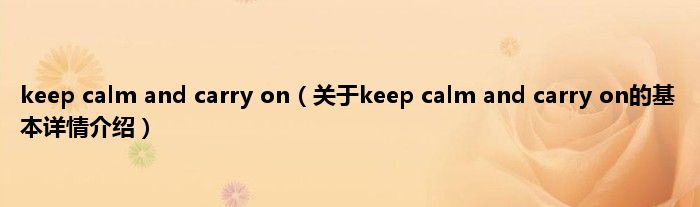 本文关于keep calm and carry on的基本详情介绍就讲解完毕,希望对大家有所帮助。