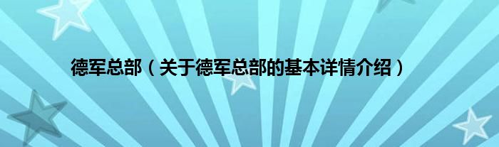 大家好我是小蝌蚪,德军总部,关于德军总部的基本详情介绍很多人还不知道,那么现在让我们一起来看看吧!