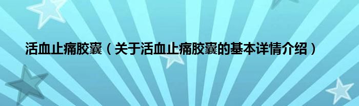 本文关于活血止痛胶囊的基本详情介绍就讲解完毕,希望对大家有所帮助。