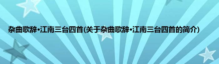 本文关于杂曲歌辞·江南三台四首的简介就讲解完毕,希望对大家有所帮助。