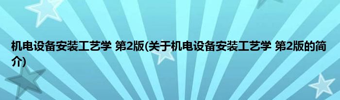 本文关于机电设备安装工艺学 第2版的简介就讲解完毕,希望对大家有所帮助。