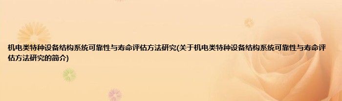 大家好,机电类特种设备结构系统可靠性与寿命评估方法研究,关于机电类特种设备结构系统可靠性与寿命评估方法研究的简介很多人还不知道,现在让我们一起来看看吧!