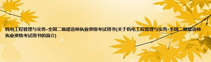 本文关于机电工程管理与实务-全国二级建造师执业资格考试用书的简介就讲解完毕,希望对大家有所帮助。
