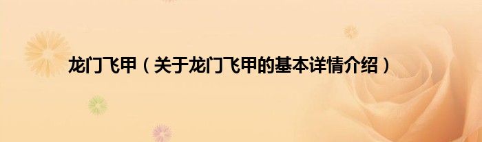 本文关于龙门飞甲的基本详情介绍就讲解完毕,希望对大家有所帮助。