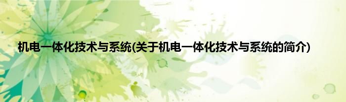 本文关于机电一体化技术与系统的简介就讲解完毕,希望对大家有所帮助。