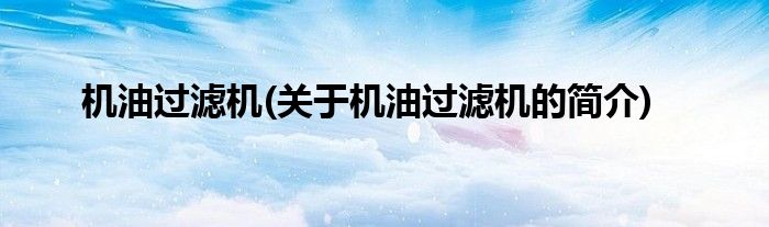 本文关于机油过滤机的简介就讲解完毕,希望对大家有所帮助。