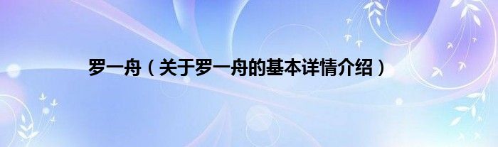 本文关于罗一舟的基本详情介绍就讲解完毕,希望对大家有所帮助。