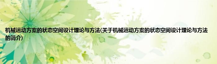 本文关于机械运动方案的状态空间设计理论与方法的简介就讲解完毕,希望对大家有所帮助。