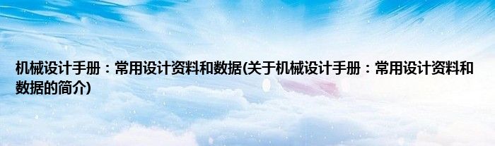 大家好,机械设计手册:常用设计资料和数据,关于机械设计手册:常用设计资料和数据的简介很多人还不知道,现在让我们一起来看看吧!
