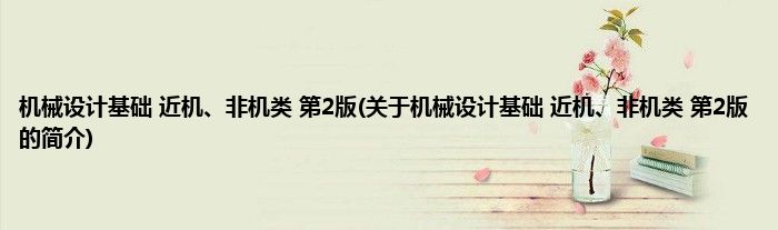 1、 《机械设计基础(近机、非机类)(第2版)》是2018年8月清华大学出版社出版的图书。
