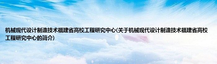 本文关于机械现代设计制造技术福建省高校工程研究中心的简介就讲解完毕,希望对大家有所帮助。