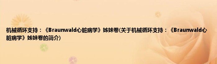 大家好,机械循环支持:《Braunwald心脏病学》姊妹卷,关于机械循环支持:《Braunwald心脏病学》姊妹卷的简介很多人还不知道,现在让我们一起来看看吧!