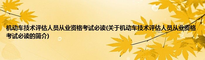 本文关于机动车技术评估人员从业资格考试必读的简介就讲解完毕,希望对大家有所帮助。