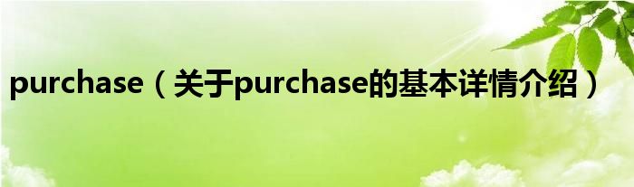 本文关于purchase的基本详情介绍就讲解完毕,希望对大家有所帮助。