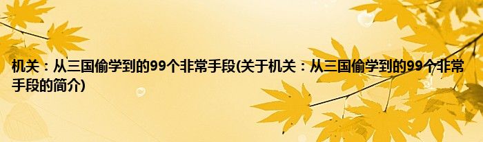 本文关于机关:从三国偷学到的99个非常手段的简介就讲解完毕,希望对大家有所帮助。