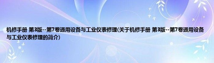 机修手册 第3版--第7卷通用设备与工业仪表修理(关于机修手册 第3版--第7卷通用设备与工业仪表修理的简介)