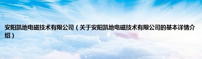 本文关于安阳凯地电磁技术有限公司的基本详情介绍就讲解完毕,希望对大家有所帮助。