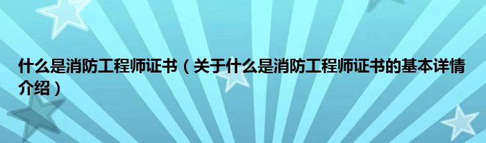 什么是消防工程师证书(关于什么是消防工程师证书的基本详情介绍)