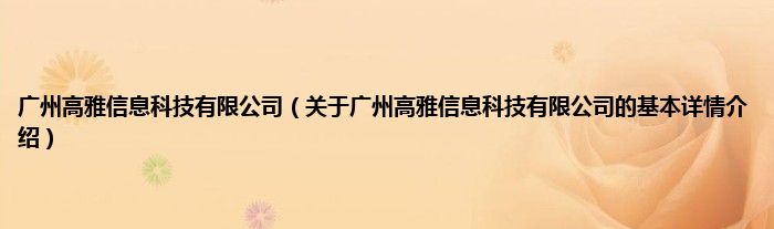 本文关于广州高雅信息科技有限公司的基本详情介绍就讲解完毕,希望对大家有所帮助。