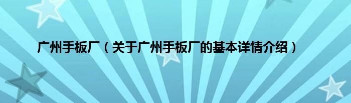 本文关于广州手板厂的基本详情介绍就讲解完毕,希望对大家有所帮助。