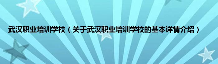本文关于武汉职业培训学校的基本详情介绍就讲解完毕,希望对大家有所帮助。