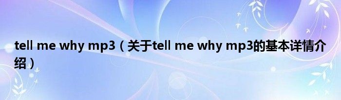 本文关于tell me why mp3的基本详情介绍就讲解完毕,希望对大家有所帮助。