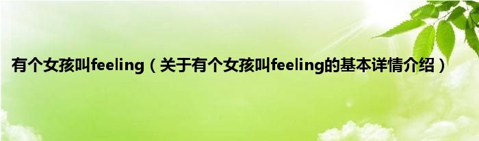 本文关于有个女孩叫feeling的基本详情介绍就讲解完毕,希望对大家有所帮助。