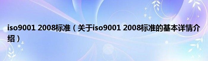 本文关于iso9001 2008标准的基本详情介绍就讲解完毕,希望对大家有所帮助。