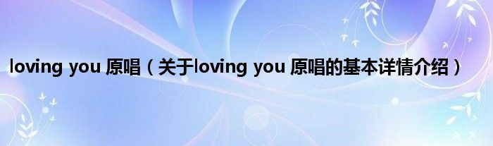 本文关于loving you 原唱的基本详情介绍就讲解完毕,希望对大家有所帮助。