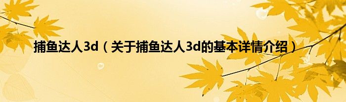 本文关于捕鱼达人3d的基本详情介绍就讲解完毕,希望对大家有所帮助。
