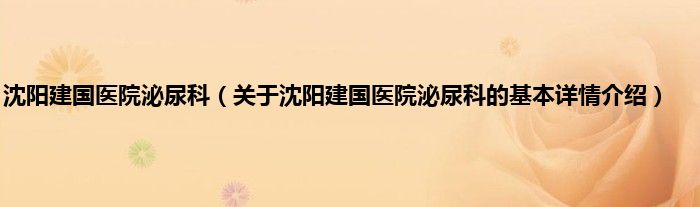 本文关于沈阳建国医院泌尿科的基本详情介绍就讲解完毕,希望对大家有所帮助。