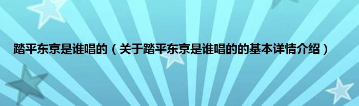 本文关于踏平东京是谁唱的的基本详情介绍就讲解完毕,希望对大家有所帮助。