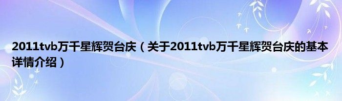 本文关于2011tvb万千星辉贺台庆的基本详情介绍就讲解完毕,希望对大家有所帮助。