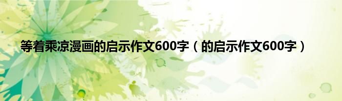大家好,小问来为大家解答以上问题。等着乘凉漫画的启示作文600字,的启示作文600字这个很多人还不知道,现在让我们一起来看看吧!