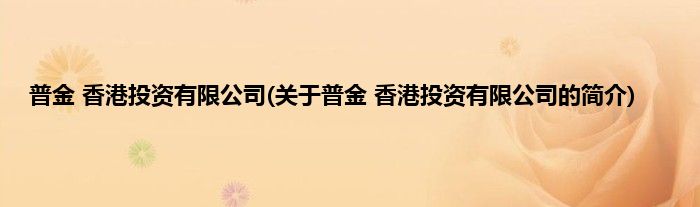 本文关于普金 香港投资有限公司的简介就讲解完毕,希望对大家有所帮助。
