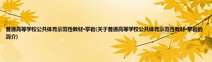 本文关于普通高等学校公共体育示范性教材·攀岩的简介就讲解完毕,希望对大家有所帮助。