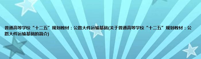 本文关于普通高等学校“十二五”规划教材:公路大件运输基础的简介就讲解完毕,希望对大家有所帮助。
