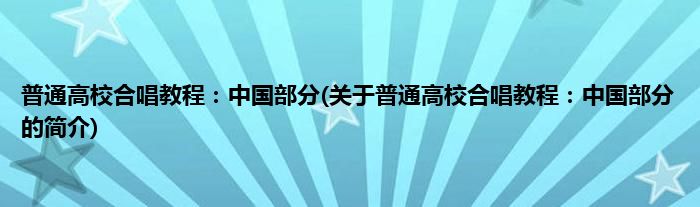 本文关于普通高校合唱教程:中国部分的简介就讲解完毕,希望对大家有所帮助。